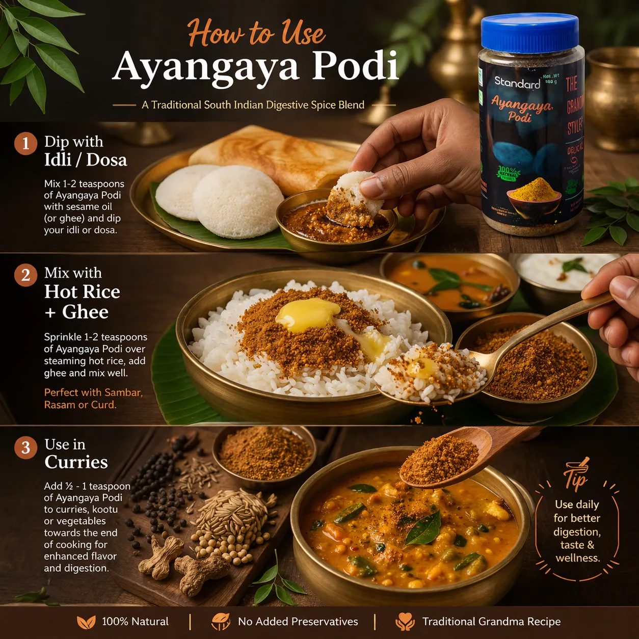 Angaya Podi brings tradition and wellness to every meal, serving as both a spice and a health-boosting supplement.