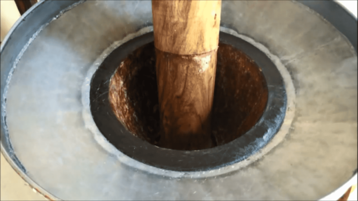 Cold pressed coconut oil is traditionally prepared using wood-pressing methods to retain the natural aroma and flavor of coconuts.