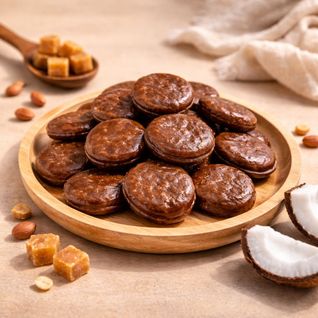Kamarkat contains jaggery and coconut, both of which are nutrient-dense ingredients. Jaggery is a good source of iron, calcium, magnesium, and potassium. Coconut provides essential vitamins, minerals, and healthy fats