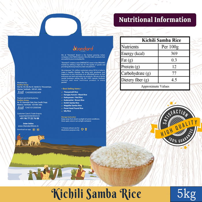 - Versatile: Kichili Samba Rice is a versatile ingredient that can be used in a variety of dishes. It can be used in traditional Indian recipes such as biryani, pulao, and curries, or used as a base for stir-fry dishes, sushi, and salads.