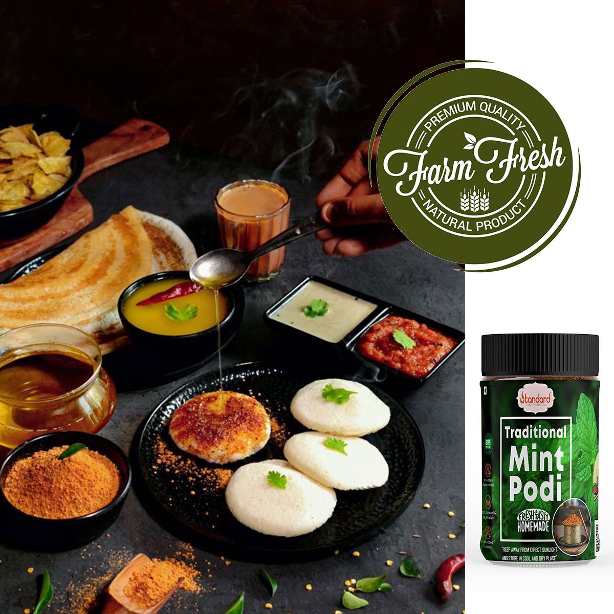 Mint Idli Dosa Podi leaves may help freshen your breath right away because of the presence of mint properties.