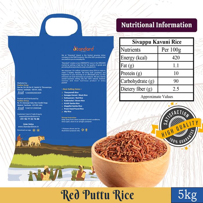 - Good Source of Fiber: Red puttu rice is a good source of dietary fiber, which is essential for a healthy digestive system. Fiber promotes regular bowel movements, prevents constipation, and aids in weight management by promoting feelings of fullness.