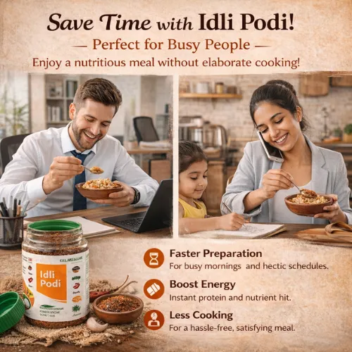 Ellu enhances blood circulation. It is a readymade side dish for a batter based breakfast mostly in the south. Ellu Idli Podi is pounded to perfection to give you a smooth blend.